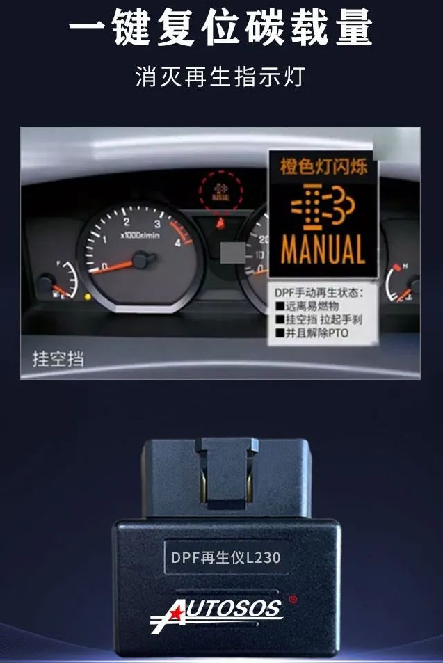 第三種服務(wù)再生,當(dāng)在車輛上無法執(zhí)行駐車再生時(shí),司機(jī)師傅可以選擇使用隨身攜帶的L230 DPF再生儀進(jìn)行一鍵再生,對于碳載量超標(biāo)無法執(zhí)行再生的可選擇執(zhí)行碳載量復(fù)位后再生。